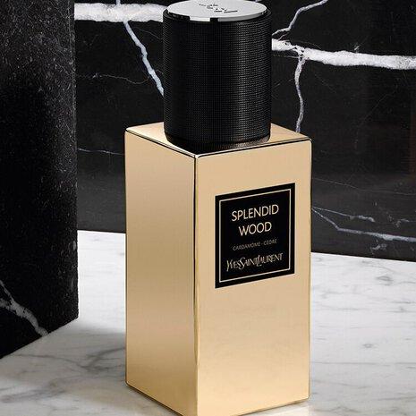 На межі світла і тіні, Splendid Wood розкриває глибину рідкісних порід деревини, пожвавлених прохолодними прянощами. Цей аромат немов дихання вогняних нот, що поєднують тепло та свіжість, створюючи унікальне відчуття балансу.